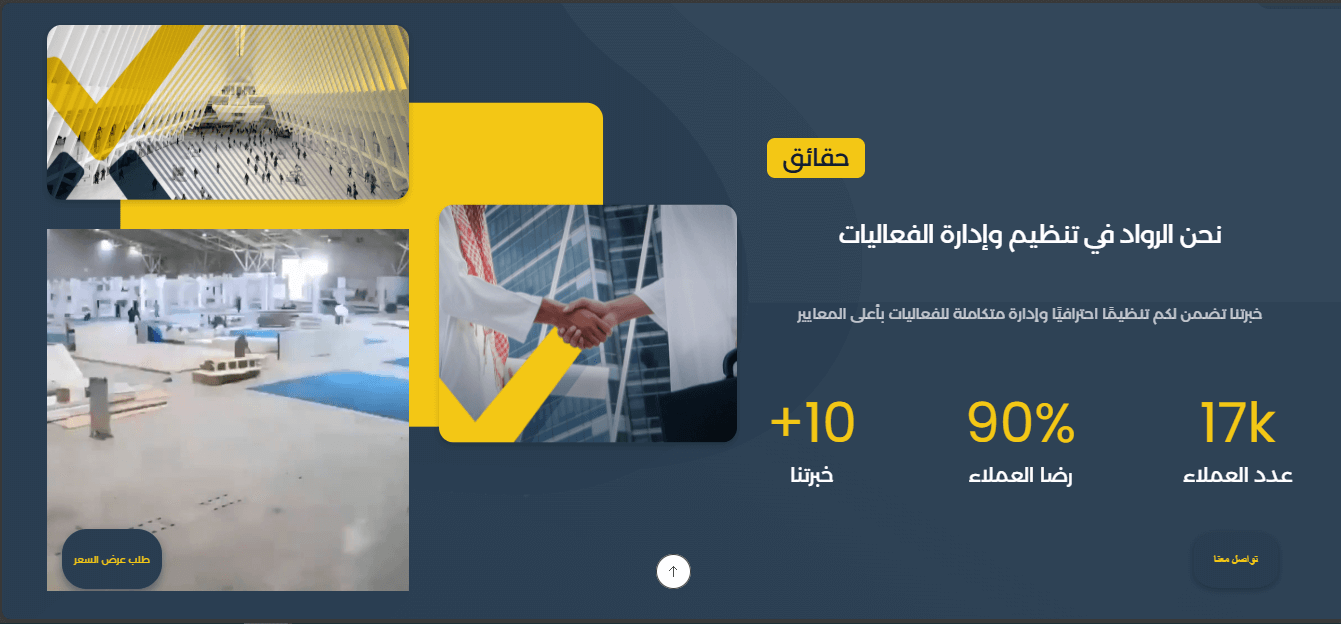 أقسام واضحة تشمل: نبذة عن الشركة، خدماتنا، معرض المشاريع، تواصل معنا.